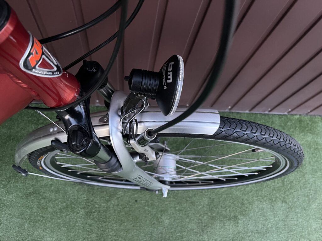 -prądnica w przednim kole zasila przednia i tylnią lampę
