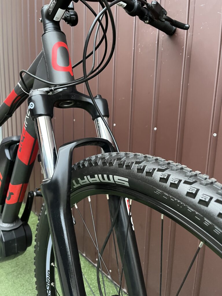 -amortyzowany przedni widelec z manetką blokady na kierownicy